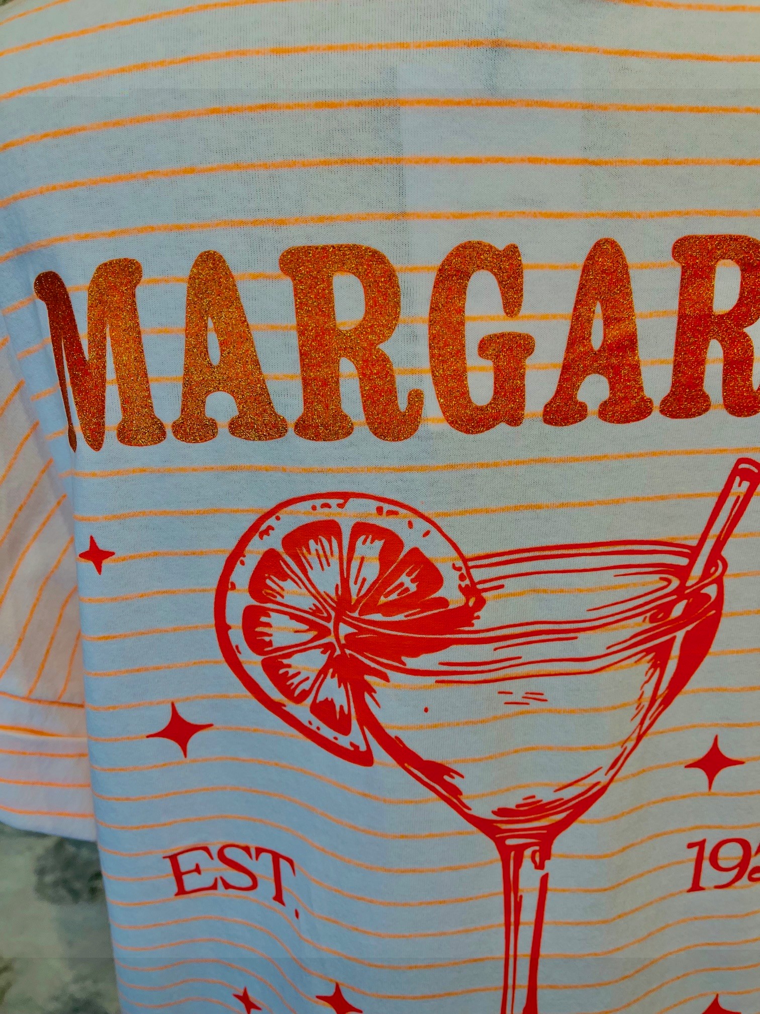 T-shirt "Margarita Cocktail Club" – Rayures orange & style rétro